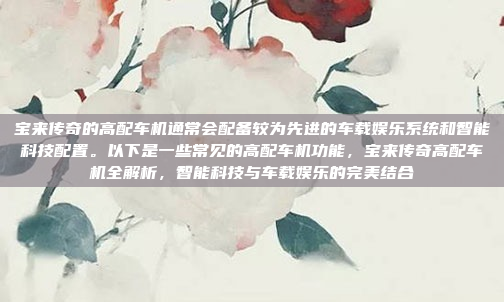 宝来传奇的高配车机系统通常配备先进的车载娱乐和智能科技功能,为驾驶者提供更便捷、安全的驾乘体验,其高配车型搭载了智能语音控制系统,支持通过语音指令操作导航、音乐、空调等功能,提升驾驶便利性,高配车机还配备了大尺寸中控屏幕,集成导航、倒车影像、手机互联(如CarPlay、CarLife)以及OTA远程升级功能,支持持续优化和扩展应用生态,部分车型还支持车联网功能,可实现车辆状态监控、远程控制等智能化操作,在智能驾驶辅助方面,高配车机通常集成ADAS(高级驾驶辅助系统),包括自适应巡航、车道保持、自动泊车等功能,进一步提升行车安全,部分高配车型还配备了360度环视系统、HUD抬头显示、后排娱乐系统等高科技配置,为用户带来更舒适、更豪华的驾乘感受,这些智能化配置不仅丰富了车内功能,也显著提升了宝来传奇的市场竞争力。