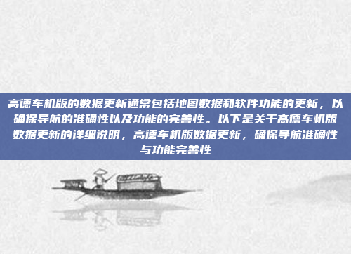 高德车机版的数据更新主要包括地图数据和软件功能的更新,旨在提升导航的准确性和功能的完善性,地图数据的更新涵盖新增道路、修正错误数据以及更新兴趣点(如餐馆、加油站等),确保用户获得最新的地理信息,避免因数据陈旧导致的导航偏差,软件功能的更新则包括优化导航算法、新增或改进功能模块(如语音导航、路线规划等),以提升用户体验和系统性能,通过定期更新,高德车机版能够更好地满足用户需求,提供更智能、更可靠的导航服务。