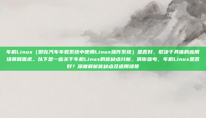 车机Linux是否适合使用,取决于具体的应用场景和需求,Linux操作系统在汽车车载系统中的表现具有一定的优势,例如其开源特性使得定制化和扩展性更强,同时支持多线程和实时任务,适合复杂的车载功能开发,Linux的稳定性和安全性较高,能够满足汽车系统对可靠性的要求,Linux在实时性和资源占用方面存在一定不足,可能导致系统响应延迟或资源消耗较大,开发周期较长、兼容性问题以及较高的维护成本也是需要考虑的缺点,是否选择车机Linux,需综合评估实际需求、技术能力以及预算等因素。