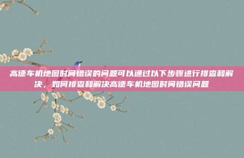 高德车机地图时间错误的问题可以通过以下步骤进行排查和解决:检查设备的系统时间设置,确保其与高德地图的时间同步正确,如果时间显示不准确,尝试手动调整设备时间并重新同步,确认设备的网络连接是否正常,因为网络问题可能导致时间更新失败,如果网络连接正常,可以尝试重启设备,以清除可能的临时故障,检查设备的系统版本是否为最新版本,必要时更新系统或高德地图软件,如果以上方法仍无法解决问题,建议联系高德地图客服寻求进一步的技术支持,通过这些步骤,可以有效排查并解决高德车机地图时间错误的问题。