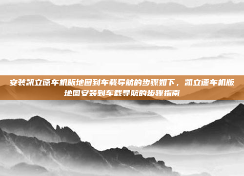 通过以上详细步骤,您可以轻松完成凯立德车机版地图的安装和更新,如果在操作过程中遇到任何问题,建议查阅设备说明书或联系专业技术人员寻求帮助,定期更新地图数据,将为您的驾驶提供更精准的导航服务,确保行车安全和旅途顺畅。