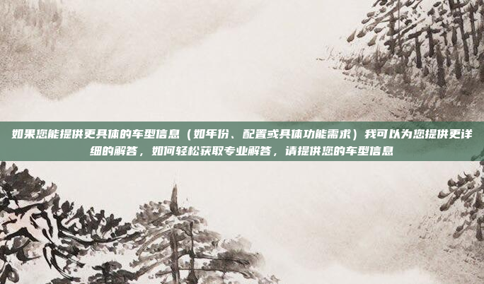 根据您提供的内容,我将为您生成一段摘要:,---,如果您能提供更具体的车型信息(如年份、配置或具体功能需求),我可以为您提供更详细的解答,感谢您的支持与配合!,--- ,如果需要进一步的帮助,请提供更多相关信息。