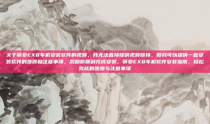 关于帝豪EX8车机安装软件的视频内容无法直接提供,但以下是安装软件的步骤和注意事项,供参考:,1. **准备工作**:确保车辆处于安全状态,断开电源或使用安全绳固定车辆,备份重要数据,如导航地图、音乐等,以防数据丢失。,2. **安装步骤**:, - 使用专用工具断开车机电源。, - 连接电脑与车机,选择合适的软件版本进行安装。, - 按照提示完成软件安装,确保安装过程无误。, - 重启车机,测试功能是否正常。,3. **注意事项**:, - 安装前确认软件版本与车辆匹配,避免因版本不兼容导致问题。, - 安装过程中不要中断电源,以免损坏设备。, - 安装完成后,检查功能是否正常,必要时恢复备份数据。, - 如不确定操作,建议寻求专业人员帮助。,通过以上步骤和注意事项,可以顺利完成帝豪EX8车机软件的安装。