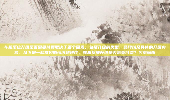 车机系统升级是否需要付费取决于具体情况,建议在升级前详细了解相关信息,并确保选择可靠的方式进行升级,以保障车辆性能和您的权益。