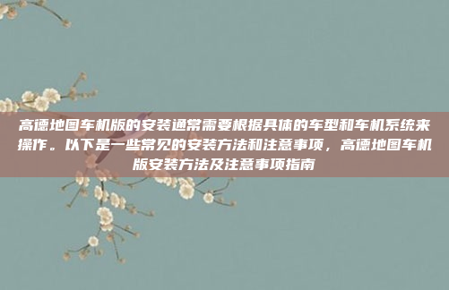 高德地图车机版的安装通常需要根据具体的车型和车机系统来操作,在安装前,建议查阅车辆的用户手册或咨询4S店,以确认是否支持高德地图车机版的安装,常见的安装方法包括通过官网下载适配版本的软件,或通过专业工具将地图数据写入车机系统,安装过程中需要注意断开车辆电源,避免因电流不稳定导致数据损坏,建议备份车机系统数据,以防万一,安装完成后,需进行简单的设置和测试,确保地图功能正常运行,总体而言,安装过程需谨慎操作,建议不具备专业技能的用户寻求专业人员协助。
