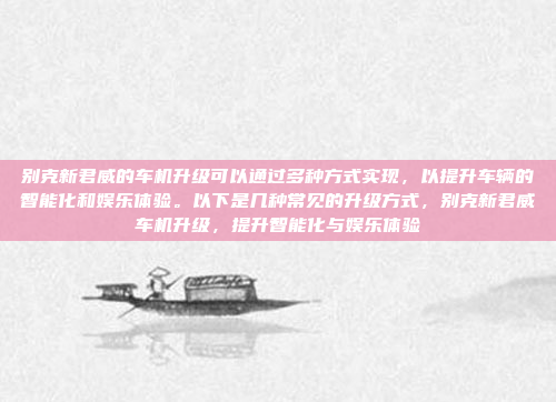 别克新君威的车机升级可通过多种方式实现,以提升车辆的智能化和娱乐体验,常见的升级方式包括通过原厂系统升级、第三方软件升级、硬件升级以及OTA远程升级,原厂系统升级通常由4S店完成,确保与车辆兼容性;第三方软件则提供更多个性化功能,但需注意兼容性和稳定性;硬件升级可提升性能,如更换更高配置的中控屏或处理器;OTA远程升级则方便快捷,可直接通过网络完成,这些升级方式为车主提供了更多选择,进一步提升了车辆的智能化水平和娱乐体验。