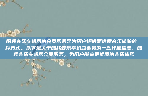 - 通过App购买:用户可以通过酷我音乐App购买会员服务,随后在车机版上同步使用。