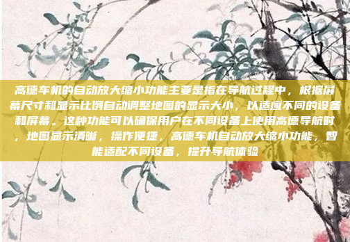 确保使用的设备支持高德车机系统的自动缩放功能,部分老旧设备可能无法完全适配,建议选择最新款设备以获得最佳体验。 -