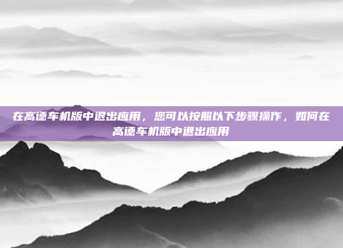 按照以上方法,您可以轻松退出高德车机版应用,如果在操作过程中遇到任何问题,请及时联系技术支持,以获得更专业的帮助。