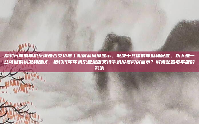 猎豹汽车的车机系统是否支持与手机屏幕同屏显示,取决于具体的车型和配置,大多数现代汽车的车机系统都支持与手机连接,通过蓝牙、Wi-Fi或有线连接实现屏幕同步显示,猎豹汽车的不同车型和配置可能会有不同的功能支持。,建议用户查阅车辆的用户手册或联系猎豹汽车的官方客服,以获取具体的车型信息,也可以通过4S店或在线论坛了解其他车主的使用体验,以确认车机系统是否支持与手机屏幕同屏显示功能。