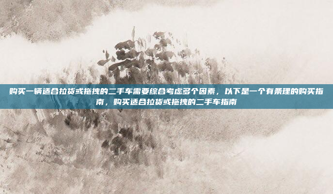 购买适合拉货或拖拽的二手车需综合考虑多个关键因素,明确车辆用途,选择适合载货或拖拽的车型,如货车或SUV,并确保其最大载重符合需求,检查发动机和变速箱的性能,优先选择低里程、维护良好的车辆,车龄和使用状况也需重点关注,避免选择老旧或频繁用于重载的车辆,查看车辆的维修记录和改装情况,确保其结构强度和安全性,对于拖拽需求,还需确认车辆的拖拽能力是否符合要求,根据预算合理选择,建议到正规平台或通过可靠渠道购买,并进行专业检测以确保车况良好,综合这些因素,可帮助买家找到一辆性能可靠、经济实用的二手车。