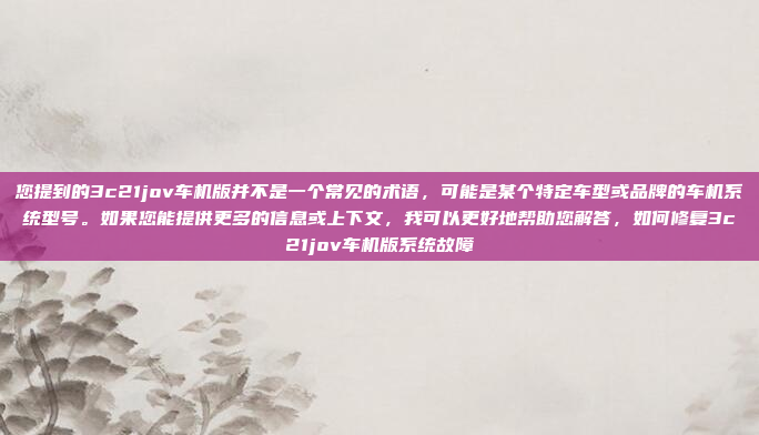 您提到的“3c21jov车机版”并不是一个常见的术语,可能是某个特定车型或品牌的车机系统型号,如果您能提供更多关于该车型、品牌或相关背景信息,我可以更好地帮助您解答。