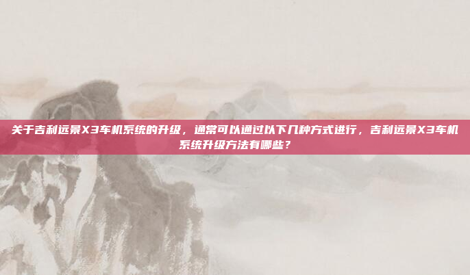 关于吉利远景X3车机系统的升级,通常可以通过以下几种方式进行:车主可以前往吉利4S店,由专业技术人员使用官方工具进行系统升级,这种方式安全可靠,但需要提前预约,部分车主选择使用吉利官方提供的升级工具包,在家自行完成升级,操作相对简单,但需要严格按照说明书进行,部分技术娴熟的车主可能会尝试手动刷入第三方固件,但这种方式风险较高,可能导致系统不稳定或功能异常,随着OTA技术的普及,部分远景X3车型支持通过车载系统直接进行远程OTA升级,这种方式方便快捷,但需确保车辆网络信号良好,需要注意的是,升级前应备份重要数据,确保车辆处于良好状态,并选择适合自己车型的升级方式,以保障行车安全和系统稳定。