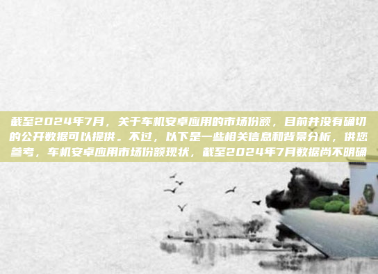 截至2024年7月,关于车机安卓应用的市场份额,目前尚无确切的公开数据支持,车机安卓系统的市场份额受多种因素影响,包括品牌合作、用户需求以及技术适配性等,安卓系统凭借其开放性和灵活性,在车机领域具有一定的竞争力,但其市场份额受到市场竞争、用户偏好以及技术成熟度的制约,随着车联网和智能驾驶技术的不断发展,车机系统的功能和应用需求也在不断变化,这可能对安卓应用的市场份额产生深远影响,车机安卓应用的市场表现将取决于技术进步、用户体验优化以及与汽车制造商的深度合作。