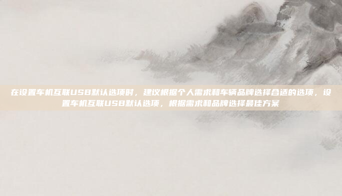 在设置车机互联USB默认选项时,建议根据个人需求和车辆品牌选择合适的选项,车机互联功能通过USB连接手机或其他设备,可实现音乐、导航、电话等多种功能的无缝衔接,不同车辆品牌对USB默认选项的设置可能有所不同,因此了解车辆的系统特点和功能需求至关重要,根据个人使用习惯,可以选择将常用功能(如音乐播放或导航)设为默认,以提升操作便捷性,需注意不同设备的文件格式和兼容性问题,确保连接设备与车机系统兼容,合理设置USB默认选项,既能优化驾驶体验,又能提高行车安全性。