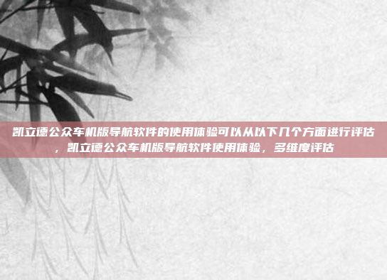 综合以上因素,凯立德公众车机版在导航准确性、功能丰富性和用户体验方面表现良好,但用户在选择时应结合个人需求和预算进行综合考量,建议参考真实用户的评价和实际试用体验,以做出更明智的决定。