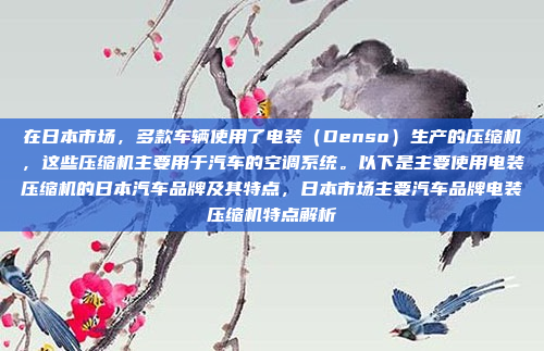 在日本市场,多款车辆采用了电装(Denso)生产的压缩机,这些压缩机主要用于汽车空调系统,电装作为全球知名的汽车零部件制造商,其压缩机凭借高效、可靠和节能的特点,被广泛应用于多个日本汽车品牌,以下是主要使用电装压缩机的日本汽车品牌及其特点:,1. **丰田(Toyota)**:丰田车型注重可靠性和能效,电装压缩机为其空调系统提供了高效的动力支持。,2. **本田(Honda)**:本田以其创新技术著称,电装压缩机在本田车辆中展现了卓越的性能和耐用性。,3. **日产(Nissan)**:日产车型强调舒适性,电装压缩机在空调系统中表现出色,为驾乘者提供了舒适的车内环境。,4. **铃木(Suzuki)**:铃木车辆以小型车为主,电装压缩机在紧凑设计中仍能提供高效的空调性能。,5. **马自达(Mazda)**:马自达注重车辆的运动性能,电装压缩机在空调系统中兼顾了性能与节能。,这些品牌通过使用电装压缩机,不仅提升了车辆的舒适性,还增强了整体性能和市场竞争力。