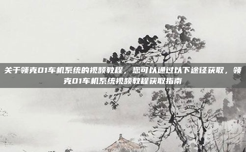关于领克01车机系统的视频教程,您可以通过多种途径获取,您可以访问领克官方网站,在“车主服务”或“技术支持”板块找到相关教程,领克官方APP也提供了丰富的视频资源,您可以在APP内直接观看或下载,如果您更倾向于线下获取,可以前往附近的领克4S店,向工作人员索取或在店内体验设备上观看,一些汽车资讯平台如汽车之家、易车等也可能会有相关的教学视频,对于喜欢通过社交媒体获取信息的用户,YouTube等平台上有许多领克车主和专业机构分享的教程视频,您可以通过搜索“领克01车机系统教程”找到相关内容,领克官方的YouTube频道也提供了详细的指导视频,您可以直接订阅并观看,这些视频教程将帮助您更好地了解和使用领克01的车机系统,提升驾驶体验。