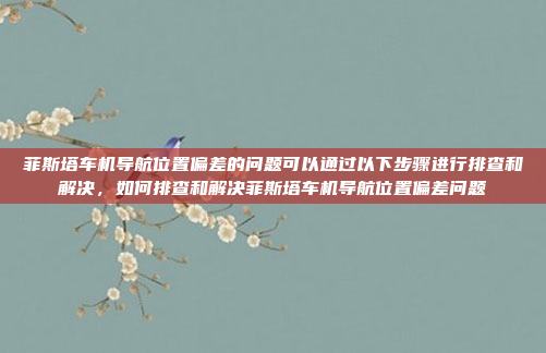 通过以上步骤,可以有效排查并解决菲斯塔车机导航位置偏差的问题,确保导航系统的准确性和可靠性,为驾驶提供更安全、更舒适的导航体验。