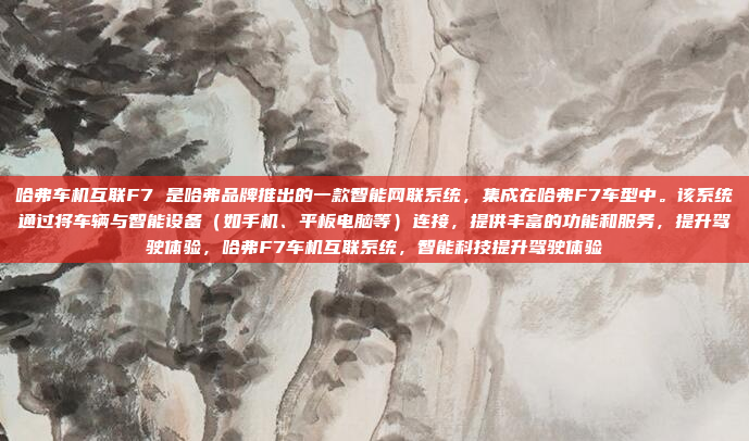 哈弗车机互联F7是哈弗品牌推出的一款智能网联系统,专为哈弗F7车型设计,该系统通过将车辆与智能设备(如手机、平板电脑)连接,提供丰富的功能和服务,旨在提升驾驶体验,用户可以通过系统实现车辆与设备之间的无缝连接,享受包括导航、娱乐、车辆控制等在内的多种智能服务,哈弗车机互联F7通过智能化的解决方案,为驾驶者带来更便捷、更安全、更高效的驾驶体验。