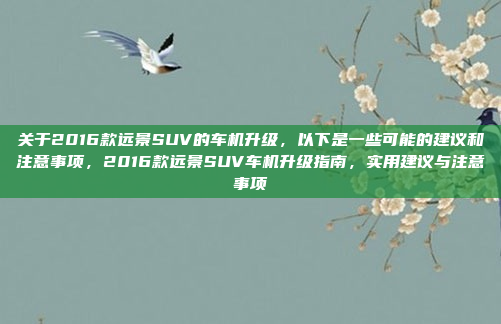 关于2016款远景SUV的车机升级,以下是一些关键建议和注意事项,升级车机系统可以显著提升车辆性能和用户体验,但需谨慎操作以避免潜在问题,建议选择官方或经过验证的升级方案,以确保兼容性和稳定性,在升级前,务必备份重要数据,如导航地图、用户设置等,以防数据丢失,建议从可靠商家或授权服务中心获取升级包,并确保操作环境干净,避免干扰,升级完成后,需重新校准车辆设置,如方向盘、座椅位置等,并测试各项功能是否正常,注意检查硬件是否与升级版本兼容,避免因不匹配导致故障,升级后建议进行详细的功能测试,确保系统运行无误,必要时可寻求专业帮助。