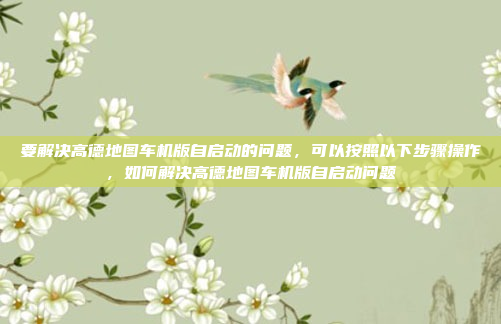 要解决高德地图车机版自启动的问题,可以按照以下步骤操作:进入高德地图车机版的设置菜单,找到“自启动”或“启动管理”选项,关闭高德地图的自启动权限,使用手机管家或手机的系统设置功能,找到“应用启动”或“优化启动项”选项,将高德地图从启动列表中移除,检查车机系统的设置,查看是否有自启动管理功能,如果有,进入相关设置关闭高德地图的自启动权限,重启车机系统,确保设置生效,通过以上步骤,可以有效解决高德地图车机版自启动的问题。