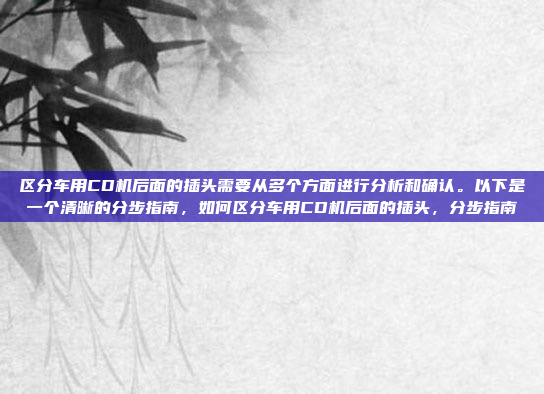 区分车用CD机后面的插头需要从多个方面进行分析和确认,以下是一个清晰的分步指南:查阅车辆的用户手册或咨询制造商,了解原厂CD机的插头类型和规格,观察插头的外观,包括形状、针脚数量和排列方式,将插头与新设备的接口进行对比,确保两者完全匹配,如果不确定,可以使用测试工具或试插的方式验证兼容性,如遇到困难,建议咨询专业技术人员或更换适配器以确保安全连接,通过这些步骤,可以有效区分并确认车用CD机插头的类型。