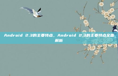 Android 2.3( Gingerbread)是谷歌推出的移动操作系统版本,主要特点包括优化的用户界面和性能,支持多任务处理和增强的通知系统,提升了用户体验,该版本引入了新的快速应用程序切换功能,使用户能够更高效地管理任务,Android 2.3改进了电池寿命管理,延长了设备续航时间,并增强了连接性,支持更多网络和蓝牙功能,其应用程序兼容性也得到提升,支持更多设备和应用,总体而言,Android 2.3在性能、用户体验和功能扩展方面进行了全面优化,为用户提供了更流畅和便捷的操作体验。