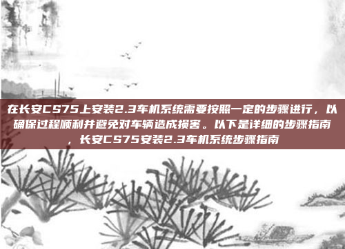 在长安CS75上安装2.3车机系统需要按照一定的步骤进行,以确保过程顺利并避免对车辆造成损害,需要准备相关工具和材料,包括螺丝刀、新的车机系统、固定支架等,断开车辆电源,拆卸原车机系统,注意保护车辆线路和饰条,避免刮伤或损坏,将新系统安装到原位置,确保支架固定牢固,并连接好电源和数据线,完成安装后,进行系统校准和功能测试,确保屏幕显示正常,各项功能运行无误,整个过程需谨慎操作,避免对车辆内部结构造成影响。