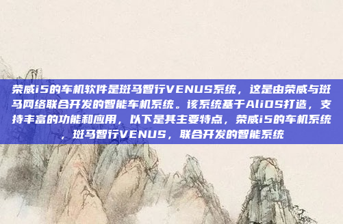 荣威i5搭载的斑马智行VENUS系统是由荣威与斑马网络联合开发的智能车机系统,基于AliOS平台打造,该系统功能丰富,支持智能语音交互、丰富的应用生态以及个性化设置,为用户提供了便捷的车内体验,其流畅的语音识别和响应能力,能够实现精准的语音控制和信息查询,系统还支持实时导航、在线音乐、智能家居互联等功能,满足用户多样化的用车需求,斑马智行VENUS系统通过OTA升级持续优化功能,为用户带来更智能、更贴心的驾乘体验。