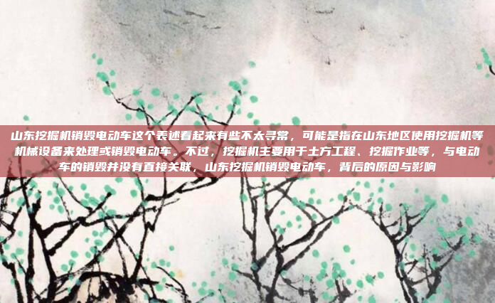 山东挖掘机销毁电动车这一表述较为特殊,通常挖掘机主要用于土方工程和挖掘作业,与电动车的销毁并无直接关联,结合上下文推测,这可能是指在山东地区使用挖掘机等机械设备来处理或销毁电动车,这种做法可能涉及对电动车的拆解、回收或报废处理,尤其是在环保和资源回收的背景下,通过机械手段对电动车进行拆解,以提取有价值的材料或进行无害化处理,这一行为也可能与政策执行或特定的环保行动有关,旨在规范电动车市场或减少非法改装、报废车辆对环境的污染,总体来看,这一表述反映了在特定场景下,挖掘机被用于非传统用途,以应对电动车的处理和销毁需求。