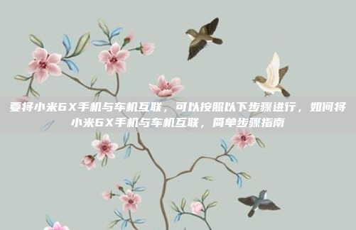 要将小米6X手机与车机互联,首先确保手机和车机的系统都是最新版本,打开手机的蓝牙功能,并在车机端选择蓝牙配对,输入手机显示的配对码完成连接,随后,打开手机的“小米车联”应用,按照提示完成账号登录和设备绑定,在车机互联功能中,选择需要连接的设备,完成配对即可实现手机与车机的互联,根据个人需求设置互联功能,如音乐播放、导航同步等,以获得更好的使用体验。