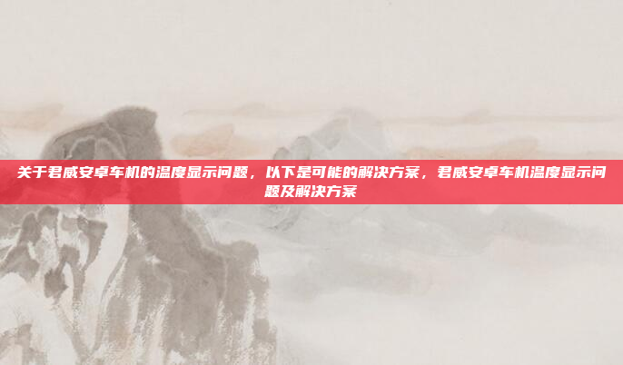 关于君威安卓车机的温度显示问题,以下是可能的解决方案:检查车辆的温度传感器是否正常工作,传感器故障可能导致显示异常,确保车机系统和相关软件已更新到最新版本,软件兼容性问题可能影响温度显示功能,可以尝试对车机系统进行重新校准,以解决显示偏差问题,如果问题依旧存在,建议联系专业技术人员检查硬件或系统设置,必要时更换故障部件,通过以上方法,可以有效解决君威安卓车机的温度显示异常问题,确保车辆运行正常。