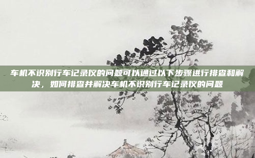 通过以上系统化的排查步骤,可以有效解决车机无法识别行车记录仪的问题,如果问题依然存在,建议及时联系专业维修人员进行检查。
