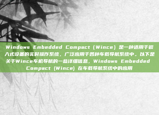 Windows Embedded Compact(Wince)是一种适用于嵌入式设备的实时操作系统,因其高效性能和稳定性,被广泛应用于车载导航系统中,Wince以其低资源占用和高度可定制性,成为汽车电子领域的重要选择,在车载导航系统中,Wince支持实时任务处理,确保导航、多媒体娱乐和车辆控制等功能的流畅运行,其强大的系统管理和设备驱动能力,使其能够适应不同车型和配置需求,Wince的高效性和可靠性使其在汽车电子领域占据重要地位,成为车载导航系统开发的理想选择。