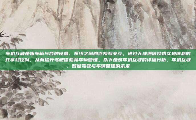 车机互联通过多种技术手段,将车辆与各种智能设备和系统连接,显著提升了驾驶体验和车辆管理的智能化水平,随着技术的不断进步,车机互联的应用场景将更加广泛,服务内容将更加智能,为未来的智慧交通和智能生活提供强有力的技术支撑。