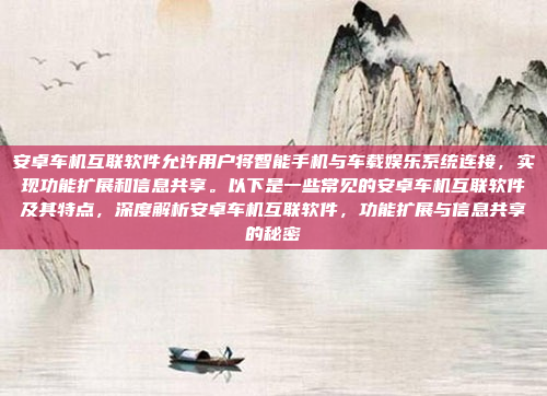 安卓车机互联软件是一种能够将智能手机与车载娱乐系统连接的技术,通过这种连接,用户可以实现功能扩展和信息共享,提升驾驶体验,常见的安卓车机互联软件包括CarPlay、Android Auto、WeLink、HiCar和MirrorLink等,这些软件支持将手机屏幕投射到车载屏幕上,用户可以通过语音控制或触控操作使用导航、音乐、消息通知等功能,许多软件还支持第三方应用的运行,进一步丰富了车载系统的功能,这些互联软件不仅提升了驾驶的便利性,还增强了车辆的安全性和智能化水平,为用户带来更舒适、更智能的出行体验。