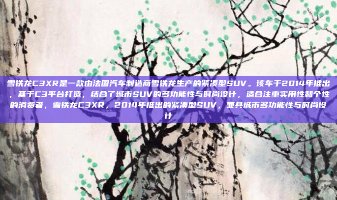 雪铁龙C3XR是由法国汽车制造商雪铁龙推出的一款紧凑型SUV,于2014年正式发布,该车基于C3平台打造,融合了城市SUV的多功能性与时尚设计,旨在满足注重实用性和个性化需求的消费者,C3XR凭借其独特的外观风格和实用的配置,成为城市驾驶和日常使用的理想选择。