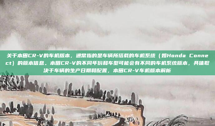 本田CR-V的车机版本指的是车辆搭载的Honda Connect系统软件版本,不同年份和车型的CR-V可能会有不同的车机系统版本,这主要取决于车辆的生产日期和配置,Honda Connect系统为车辆提供智能互联功能,包括导航、语音控制、远程控制等,不同版本的车机系统可能在功能、界面设计或性能上有所差异,车主可以通过系统更新来提升用户体验,获得最新的功能和改进,了解CR-V的车机版本有助于更好地使用车辆的智能功能,并确保系统保持最佳状态。