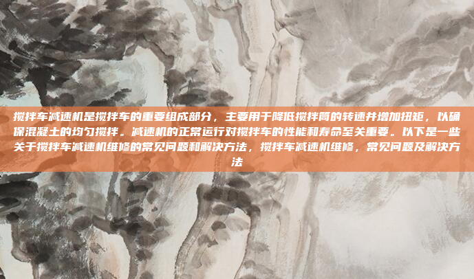 减速机作为搅拌车的重要组成部分,其维修和保养需要专业的知识和技能,通过定期的维护和检查,可以有效延长减速机的使用寿命,确保搅拌车的高效运行,如果遇到无法解决的问题,及时寻求专业帮助是最佳选择。