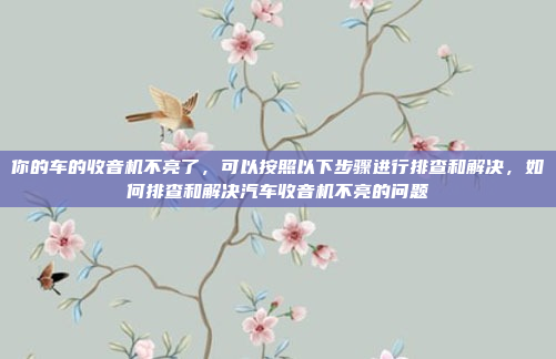 如果您的车的收音机不亮,可以按照以下步骤进行排查和解决:首先检查收音机的电源保险丝,确保其未熔断,如果保险丝正常,尝试重启收音机,有时简单的重启可以解决问题,检查天线连接是否松动或损坏,确保天线与车体接触良好,如果问题依旧,尝试通过车载娱乐系统更新软件或重新校准收音机,清洁收音机的接触点或检查线路连接是否稳固,如果以上方法无效,建议联系专业技术人员进行诊断和维修。