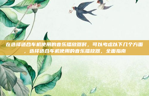 在选择适合车机使用的音乐播放器时,应综合考虑以下几个关键因素,功能需求是核心,播放器应支持多种音乐格式,提供均衡、清晰的音质,以满足车内音响系统的高品质播放需求,兼容性至关重要,需确保与车辆的娱乐系统无缝对接,支持主流的连接方式,如蓝牙、USB或Wi-Fi,同时具备良好的操控性和稳定性,操作界面应简洁直观,触控或物理按键操作便捷,尤其在行驶过程中能保证安全性和易用性,存储扩展功能也是重要考量,支持本地音乐文件导入或在线音乐库的无缝接入,满足多样化的听歌需求,建议选择知名品牌的播放器,其性能和售后服务更有保障,确保在复杂环境下稳定运行,为驾乘者带来优质的音乐体验。