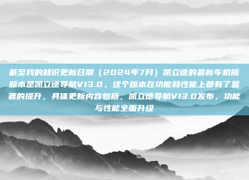 截至2024年7月,凯立德导航的最新版本为V13.0,该版本在功能和性能上均有显著提升,新版本优化了界面设计,提升了操作流畅度,同时增加了更多实用功能,如语音交互、智能路线规划等,V13.0还对地图数据进行了更新,覆盖更多区域,导航精度进一步提高,系统稳定性也得到了增强,减少了卡顿和延迟现象,总体来看,凯立德导航V13.0在用户体验和功能丰富性上均有较大改进,为用户提供了更智能、更便捷的导航服务。
