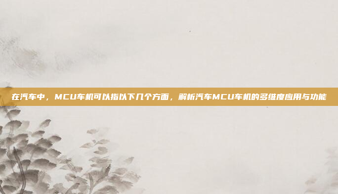 MCU车机通常指的是在汽车中使用微控制单元(MCU)作为核心控制器的车载主机或信息娱乐系统,MCU(Microcontroller Unit)是一种集成的嵌入式芯片,通常包含中央处理器(CPU)、存储器、输入输出接口(I/O)以及其他外设,广泛应用于各种电子设备中,包括汽车。