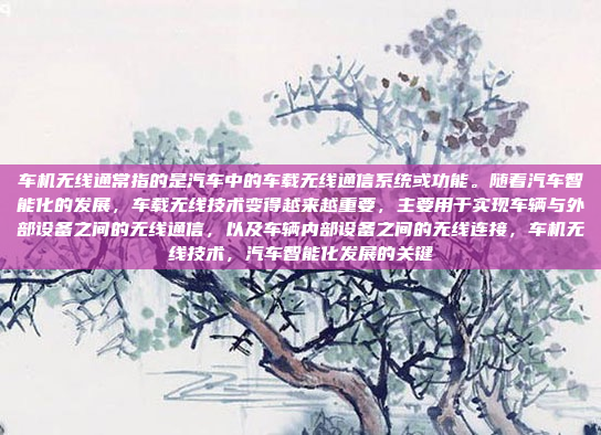 车机无线是指汽车中的车载无线通信系统或功能,随着汽车智能化的发展,其重要性日益凸显,车机无线主要用于实现车辆与外部设备(如手机、智能家居等)之间的无线通信,同时也支持车辆内部设备(如中控系统、娱乐设备、传感器等)之间的无线连接,这种技术不仅提升了车辆的智能化水平,还为用户提供了更便捷的交互体验,同时在车联网、自动驾驶等领域发挥着重要作用。