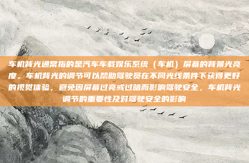 车机背光是指汽车车载娱乐系统屏幕的背景光亮度,其调节对驾驶员的视觉体验至关重要,在不同光线条件下,适当调整车机背光亮度能够帮助驾驶员获得更清晰的屏幕显示,避免因屏幕过亮或过暗而分散注意力或影响判断,从而提升驾驶安全性,车机背光的调节不仅是舒适性需求,更是驾驶安全的重要保障。
