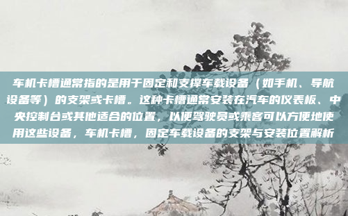 车机卡槽是一种用于固定和支撑车载设备(如手机、导航设备等)的支架或卡槽,通常安装在汽车的仪表板、中央控制台或其他适合的位置,其主要功能是为驾驶员或乘客提供一个方便的使用环境,确保设备稳固且易于操作,这种设计不仅提升了设备的实用性,还帮助用户在行车过程中更安全地使用设备,避免因设备滑动或松动而分散注意力,车机卡槽的安装位置和设计需考虑人体工学,以确保舒适性和便利性,同时不影响驾驶安全。