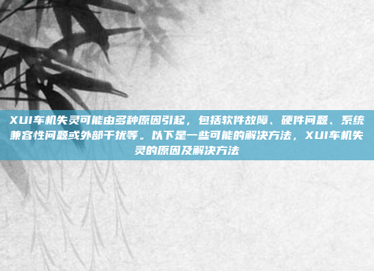 XUI车机失灵可能由多种因素导致,包括软件故障、硬件问题、系统兼容性问题或外部干扰等,为解决此类问题,可以尝试以下方法:检查是否有可用的系统更新或软件补丁,并及时安装以修复潜在问题;重启车机系统,有时简单的重启可以解决临时性故障;如果问题持续,建议联系专业技术人员进行检查,排除硬件故障或系统兼容性问题;确保车机设备远离强磁场或其他干扰源,以避免外部干扰导致的失灵,通过这些措施,可以有效应对XUI车机失灵的情况,提升使用体验。