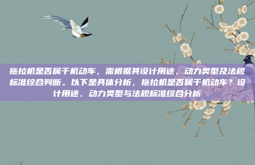拖拉机是否属于机动车需结合设计用途、动力类型及法规标准综合判定,以燃油或电力驱动、用于道路运输或农田作业的拖拉机符合机动车定义,需遵守上牌、年检等交通法规;而小型手扶式或纯农用拖拉机可能被归类为非机动车,不同国家或地区的法律对机动车的界定存在差异,如中国《道路交通安全法》将部分拖拉机纳入机动车管理,欧盟则按功率和速度分级,关键因素包括最高时速、发动机排量及是否具备公共道路行驶功能,建议用户查阅当地法规以明确具体分类要求。(148字)
