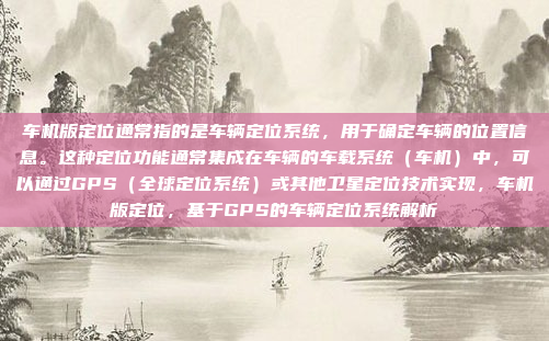 - GPS定位技术:通过接收美国GPS卫星信号,实现全球范围内的高精度定位,是车机定位系统的主流技术。